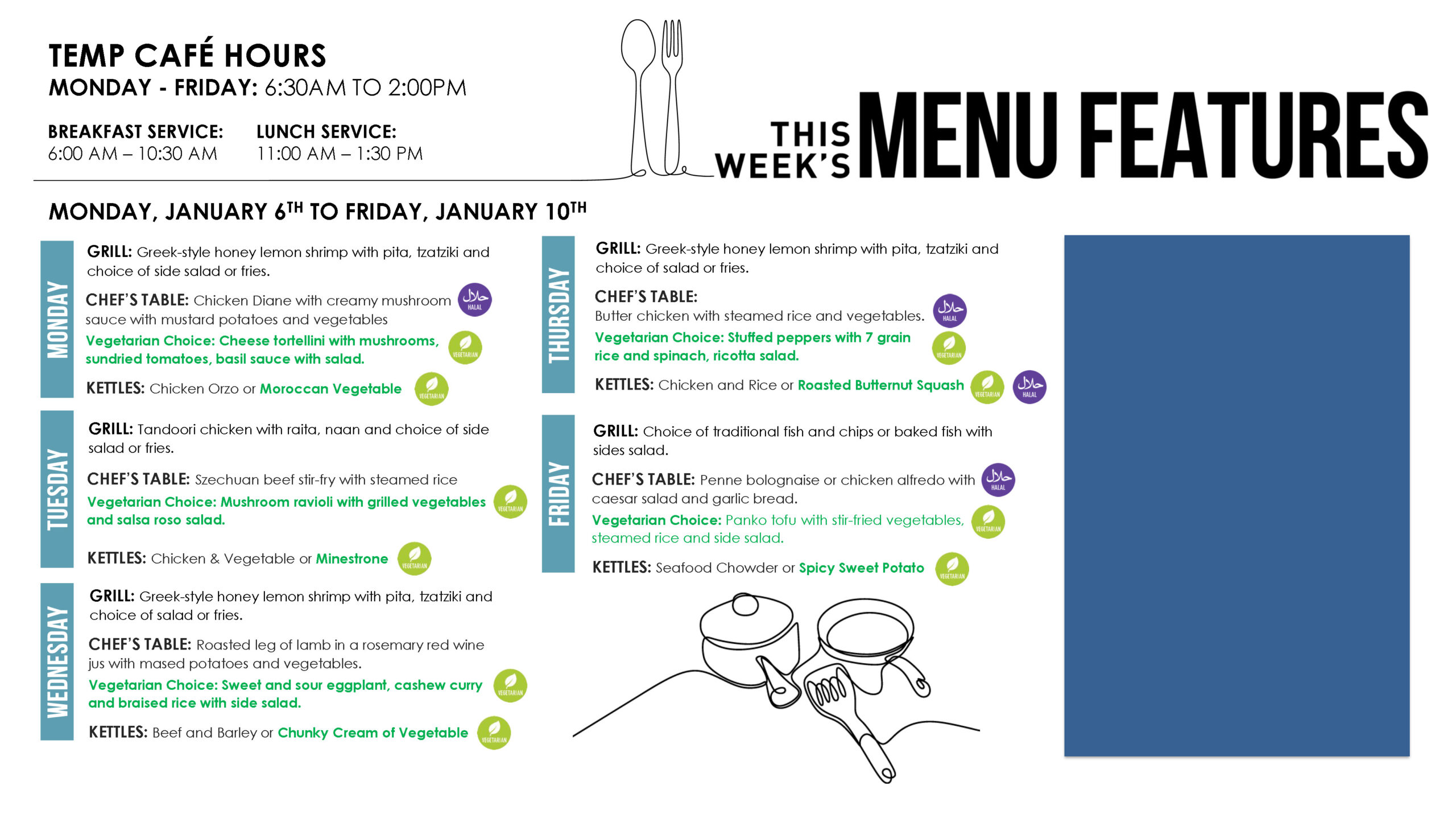 This menu changes weekly. Please check back each week to see our current menu. Please click on the image below to print.
