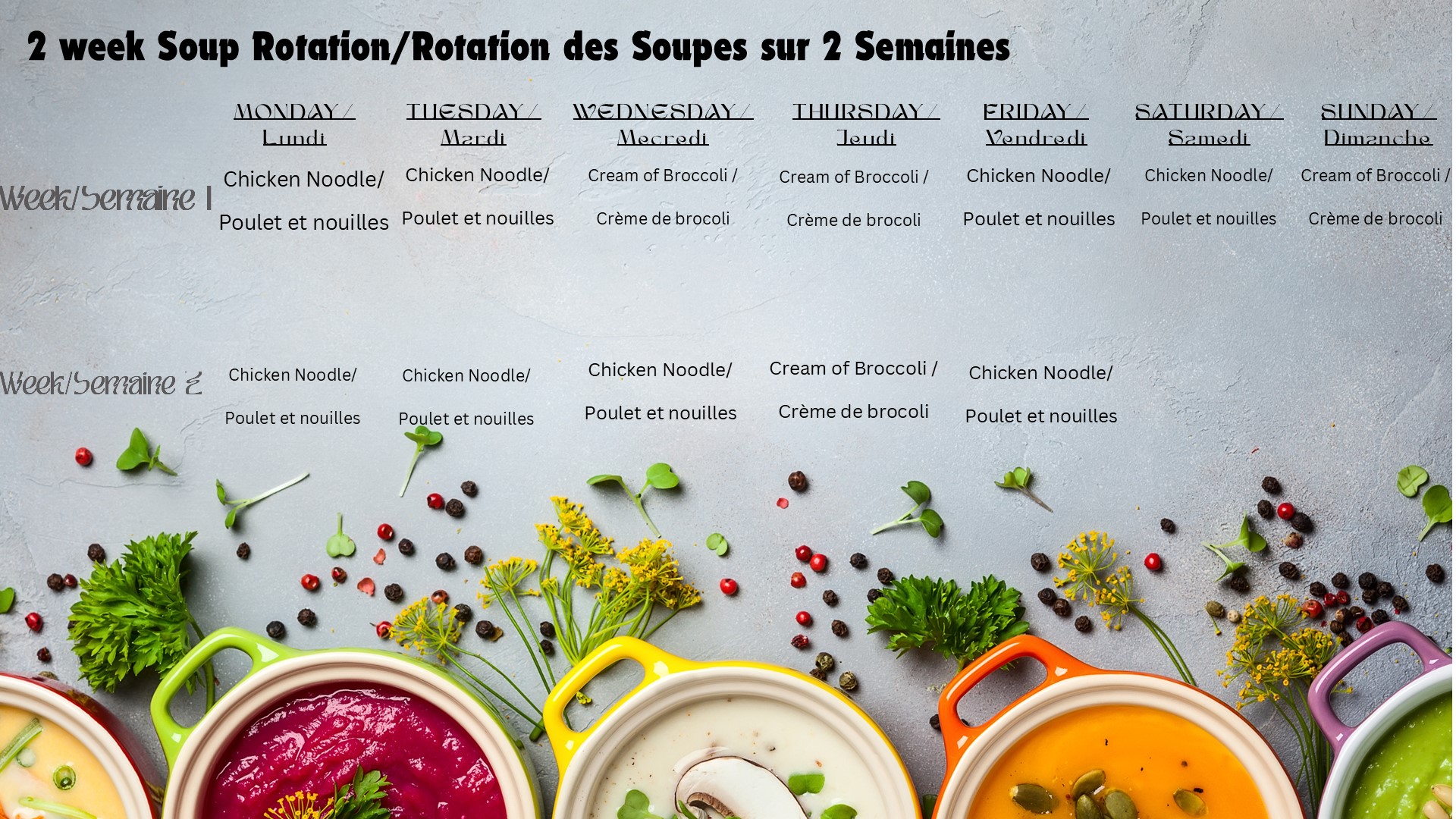 Please check back each week to see our current menu.