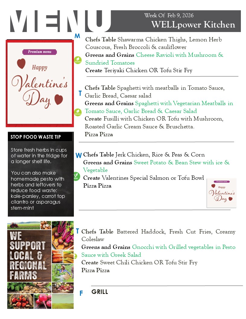 This menu changes weekly. Please check back each week to see our current menu. Please click on the image below to print.