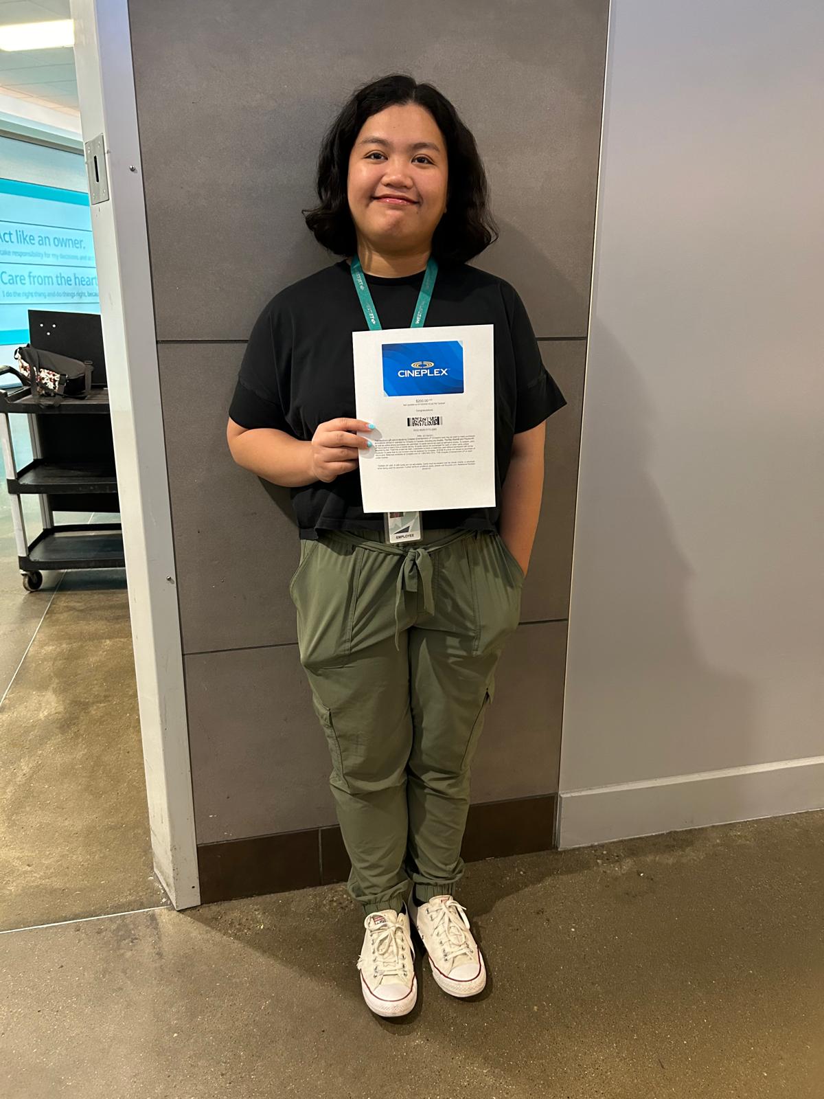Congratulations for our Thrive Winner for Receiving $200 Cineplex Gift Card